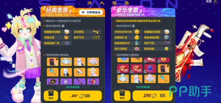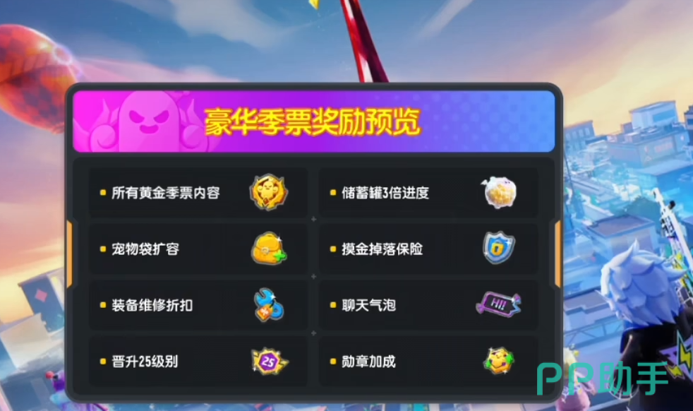 豪华季票算是季票里的全能款,要是纠结选经典还是摸金,或者想把所有奖励都拿到手,买豪华季票就对了,买了之后经典和摸金两条线的奖励能全解锁,不用再二选一,而且还有专属的豪华奖励,比如设计更特别的武器皮肤,有的还带点小特效,派对卡的卡面也是独一份的,带动态效果,拿出去能跟别人区分开,特权也升级了储蓄罐涨得比经典季票还快,宠物背包能多装东西,拿勋章的时候还有加成,最省心的是买了之后直接升几级季票,不用慢慢打等级,想快速解锁后面奖励的玩家选这个就很合适。