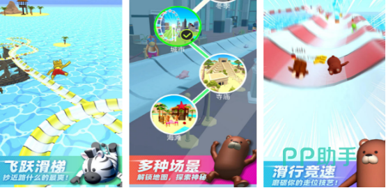充满街机风格的水滑梯手游,享受水上乐园的无限刺激,操控小人在赛道上安全的滑滑梯不断超越其他对手,虽然赛道完美曲折,高难度极高,但在探险时会发现充满无限激情,有多样化地图,可来到充满异域风情的海边以及马尔代夫,感受水滑梯无限刺激的同时,也能享受不同国度的美景。