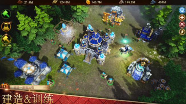 战争世纪设定了一个3d立体场景,玩家需要组建军队进行基地的建设,这样才能获得大量的能源,接着就可以带领这些士兵和怪物展开对抗,为了预防其他成员的偷袭,要在领地上建设防御塔,并且不断召唤一些强力的英雄,这样才能通过狩猎采集获得更多资源,让每个英雄的等级都能不断得到提升,在这个魔幻场景中,除了大量的对手之外,还会有很多体型庞大的怪物,玩家都能进入到这个大世界自由冒险。