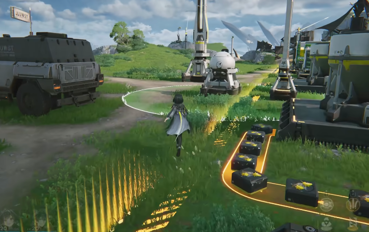 除了战斗之外,游戏里最主要的玩法就是基建,每个玩家都需要在场景里不断收集物资,探索的过程中,玩家需要放置一些基础的电力设施,接着就可以在周围修建流水线,还可以通过滑轨在这些电设施中快速穿梭,通过这种生产模式能让玩家源源不断地获取资源,既能维持自身的能量损耗,也可以修建出一个更具有科技感的大世界,相对来说剑的玩法是比较自由的,每个成员都可以根据自己的设想随意搭建场景。