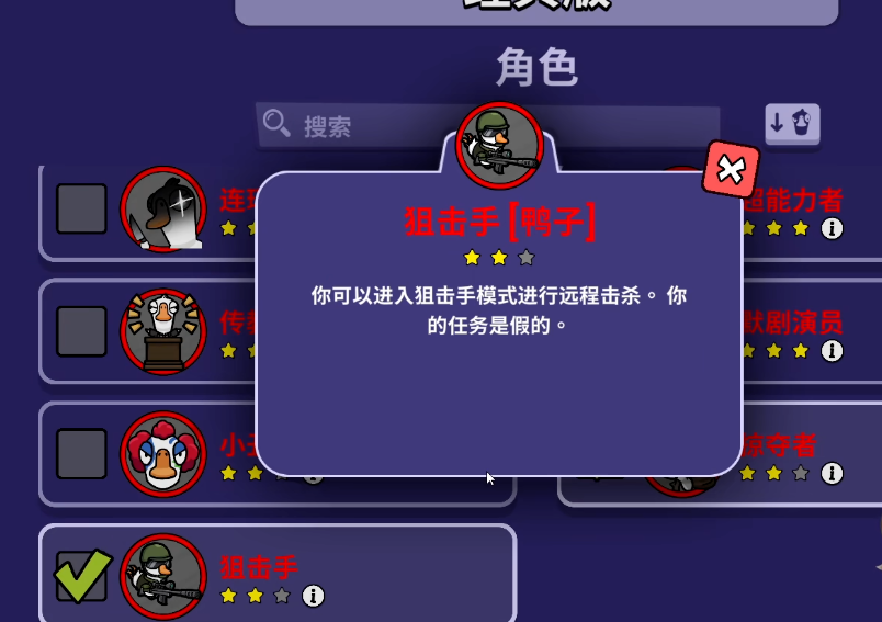 在《鹅鸭杀》手游中,玩家可以选择多种职业参与对局,每个职业都具备独特的技能机制,合理运用这些能力是取得胜利的关键。狙击手作为拥有远程击杀手段的特殊角色,其玩法核心在于精准判断与冷静决策,尤其适合擅长观察和分析局势的玩家。