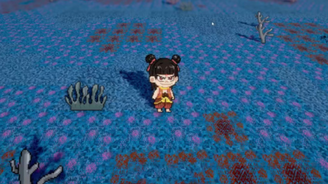 改编自《哪吒2》剧情设定,采用极简像素美术风格,构建广阔的开放探索区域。游戏视角为俯视第三人称,初始提供三种法宝选择,功能未知,完全依靠实战摸索,类似盲盒机制。开局即进入高强度战斗,玩家需快速反应躲避敌方攻击,技能体系丰富多样,每一次出手都极具视觉冲击力。