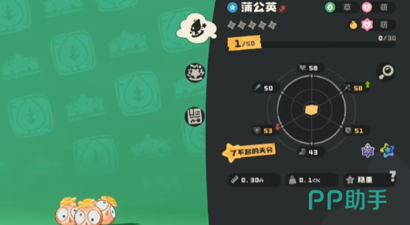 蒲公英娃娃是蒲公英的最终进化形态,拥有草+妖精双属性,使其在面对多种属性对手时具备一定的抗性优势。从基础能力来看,其生命值和物理防御表现较为出色,具备良好的站场能力,适合在对战中承担一定承伤角色。不过需要注意的是,它的速度属性偏低,在多数情况下难以抢到先手权,因此在技能选择上需要更加注重策略性。当技能消耗的能耗超过3点时,技能威力将获得40%的额外加成,这一特性成为其输出的核心机制,因此推荐搭配能耗高于3的高耗能技能以最大化伤害输出。