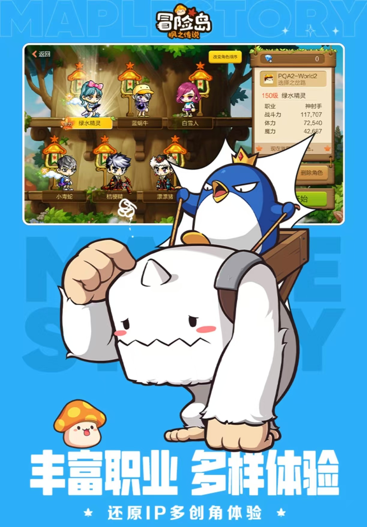 《冒险岛:枫之传说》高度还原了经典的五大职业设定,带来原汁原味的冒险体验。游戏内众多萌趣角色悉数登场,后续还可解锁更多职业组合。玩家将在一座风景优美的小岛上开启探险旅程,不仅可以建立属于自己的部落与村庄,还能探索多样生态环境。战斗系统流畅刺激,角色外观支持自定义,包括发型、服饰以及个性坐骑,打造专属冒险者形象。