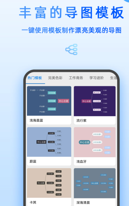 这款应用内置了大量风格多样的模板资源,适用于不同用途的需求。如果只是日常记录或简单展示,可直接选用现成模板,替换内容即可快速生成专业级导图。对于有个性化需求的用户,也可从空白画布开始自定义结构,自由添加节点、背景样式、链接地址和表情符号等元素。完成后的作品支持多种格式导出,方便在其他平台查看或分享。