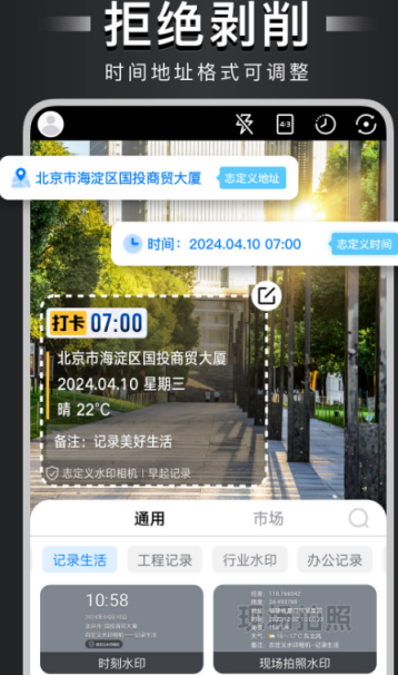 这款应用不仅支持为照片添加多样化的水印,还具备批量处理能力,非常适合经常需要记录工作现场或项目进度的职场人士。用户可自由设置时间、地点、备注等信息作为水印内容,尤其适用于工程管理、外勤打卡等场景。同时,该工具也提供反向操作功能,能够对已有水印进行擦除或覆盖,一键获取当前定位与实时时间,提升工作效率。