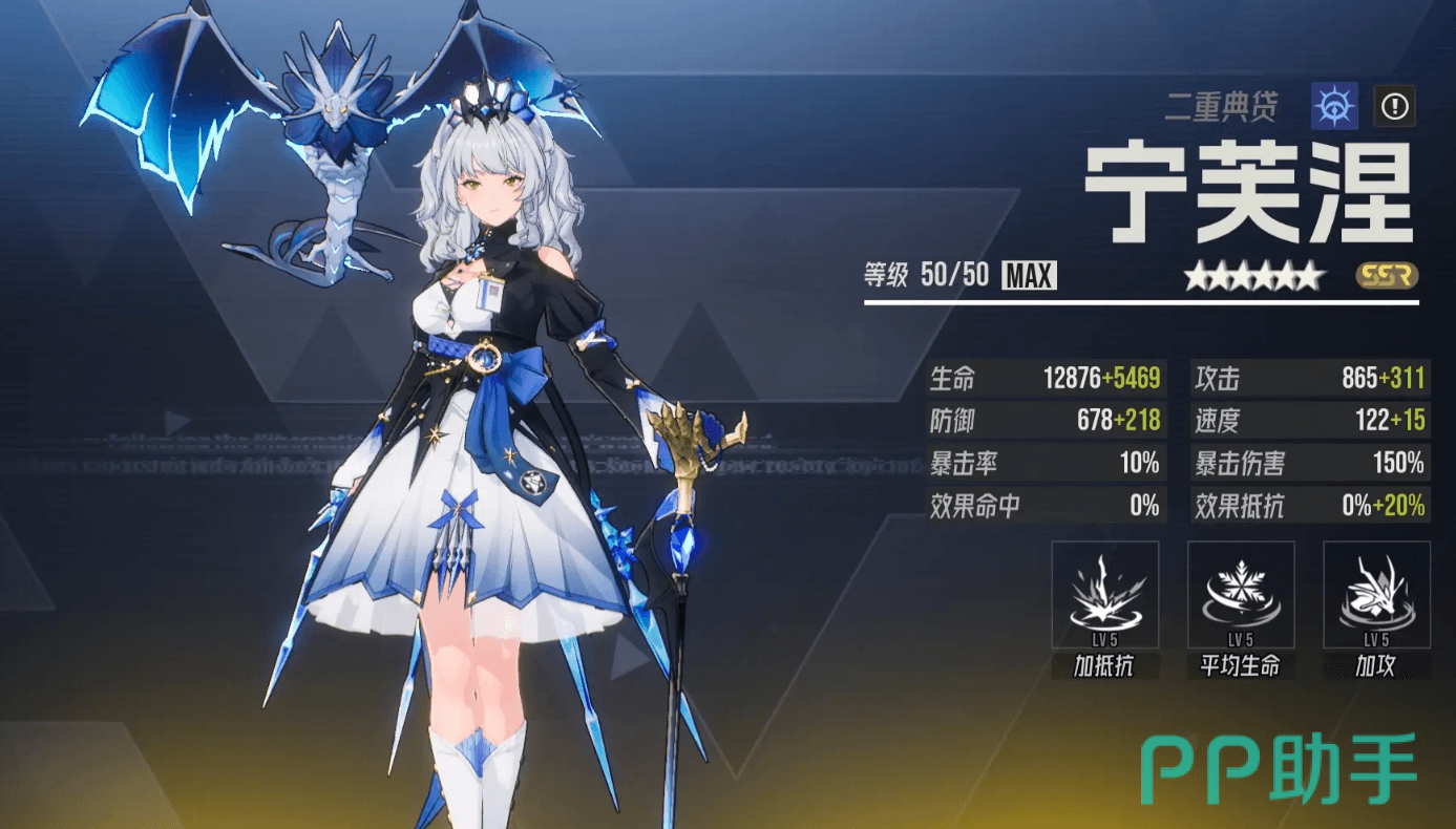 宁芙涅是一位集治疗、增益与护盾于一体的多功能支援型角色。“冻凝华”可对单个敌人造成240%伤害,并有50%概率为自己添加2回合抵抗提升效果。“溢流霜”则会重新平衡全队生命百分比,并对其进行治疗。