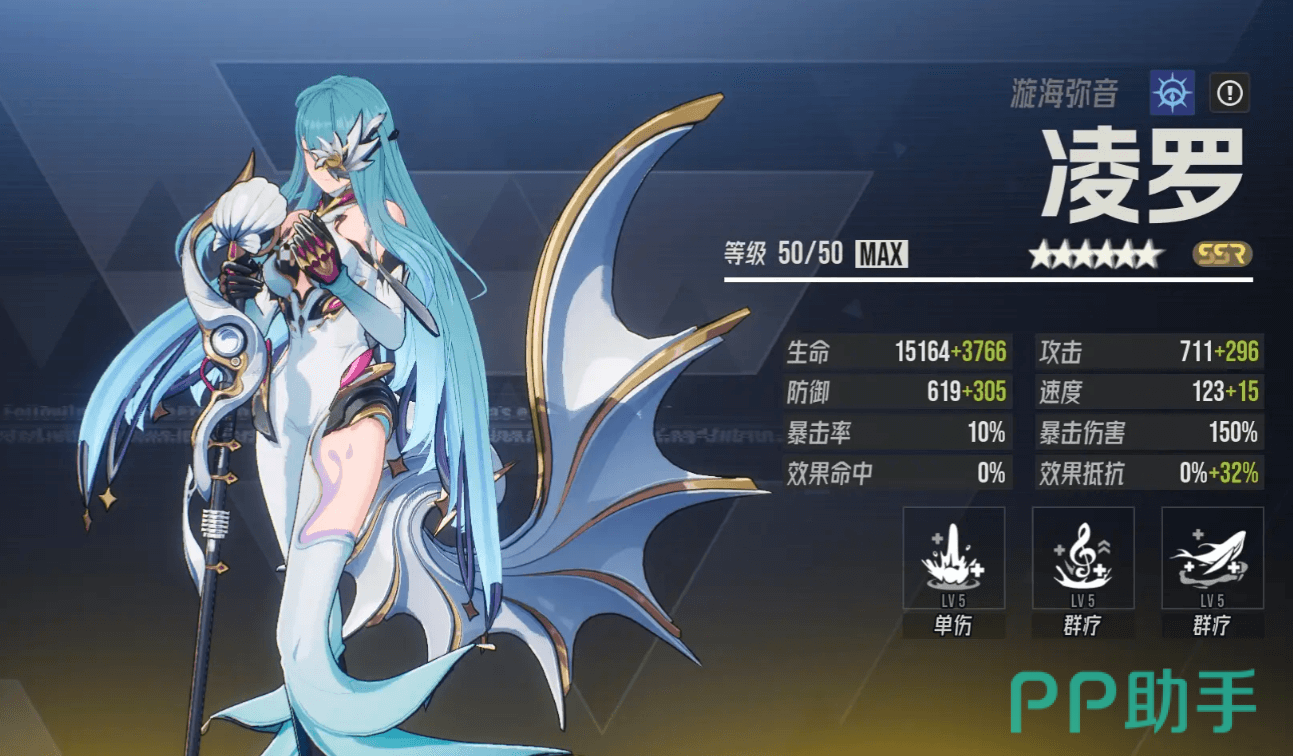 凌罗以其强大的群体治疗与净化能力成为队伍中的核心治疗者。“漩涌”技能在攻击单个敌人时,同时治疗两名生命值最低的队友。其被动可在每次治疗前以65%概率清除目标1个减益状态;若目标无减益,则有65%概率为其附加持续2回合的“鲸祈”效果,“鲸祈”持有者在每回合开始时自动回复5%最大生命值。