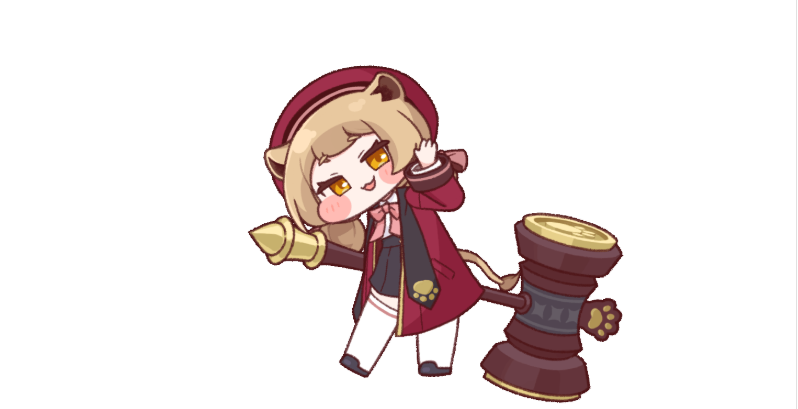 普通攻击名为舞动法槌,可对目标造成等同于自身攻击力80%的物理伤害。若敌人已累积3层“审判”状态,则会触发额外效果——降下公章,造成160%攻击力的物理伤害。此外,在普攻强化后,每第三次攻击将变为强力砸地动作,对范围内敌人造成110%的范围物理伤害,并施加一层“审判”效果,最多叠加至三层。