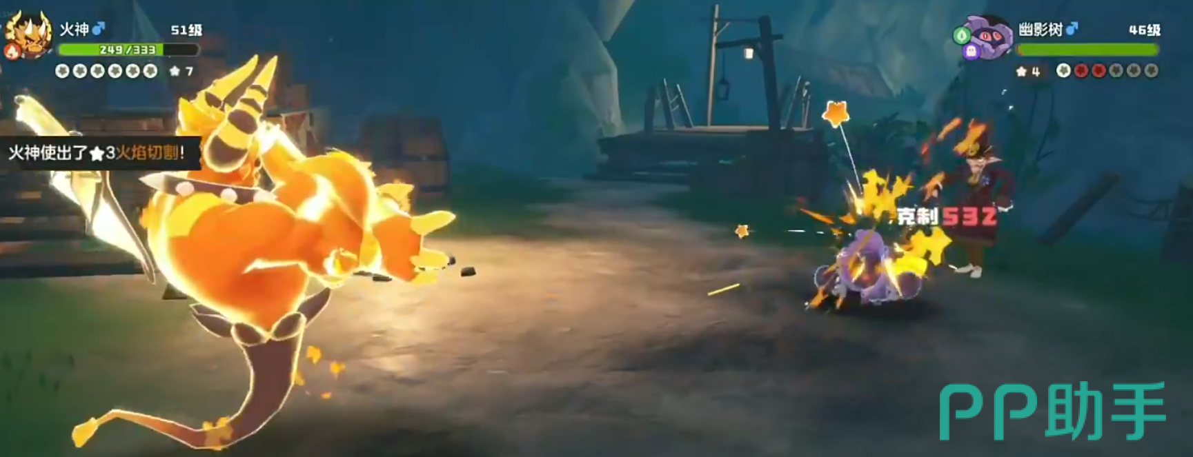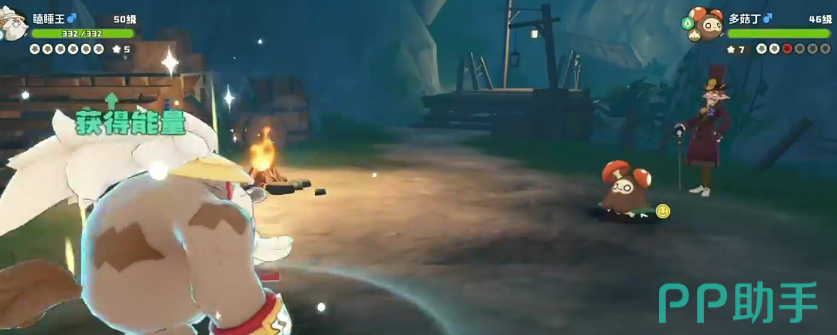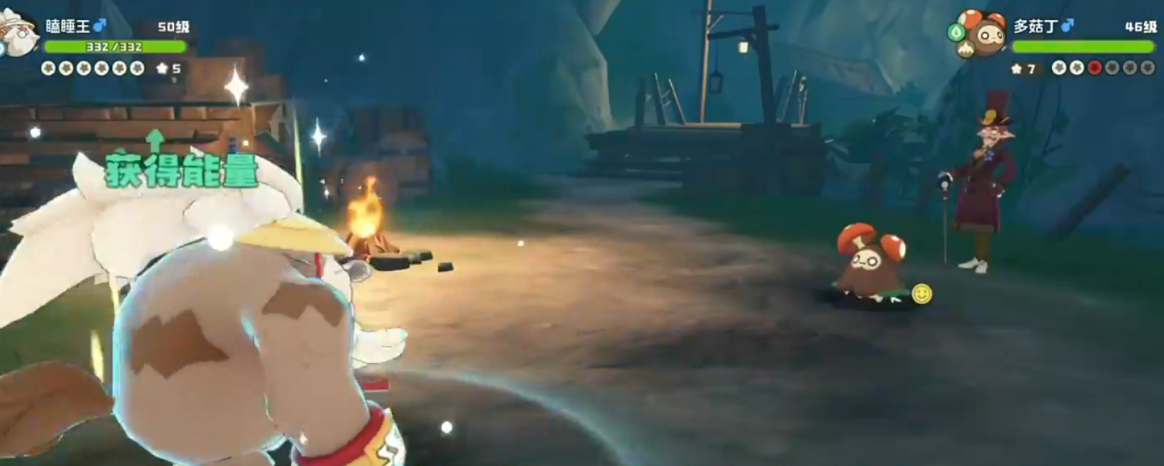 面对多菇丁,因星光狮属于被克制的一方,应立即替换为瞌睡王出场。瞌睡王不仅属性上完全压制对手,还能有效利用队伍中已存在的聚能增益状态,配合“崩拳”等高伤技能轻松取胜。第三位对手为草系与幽灵系结合的幽影树,此时建议换上火神应战,使用“火焰切割”即可一击制胜。
