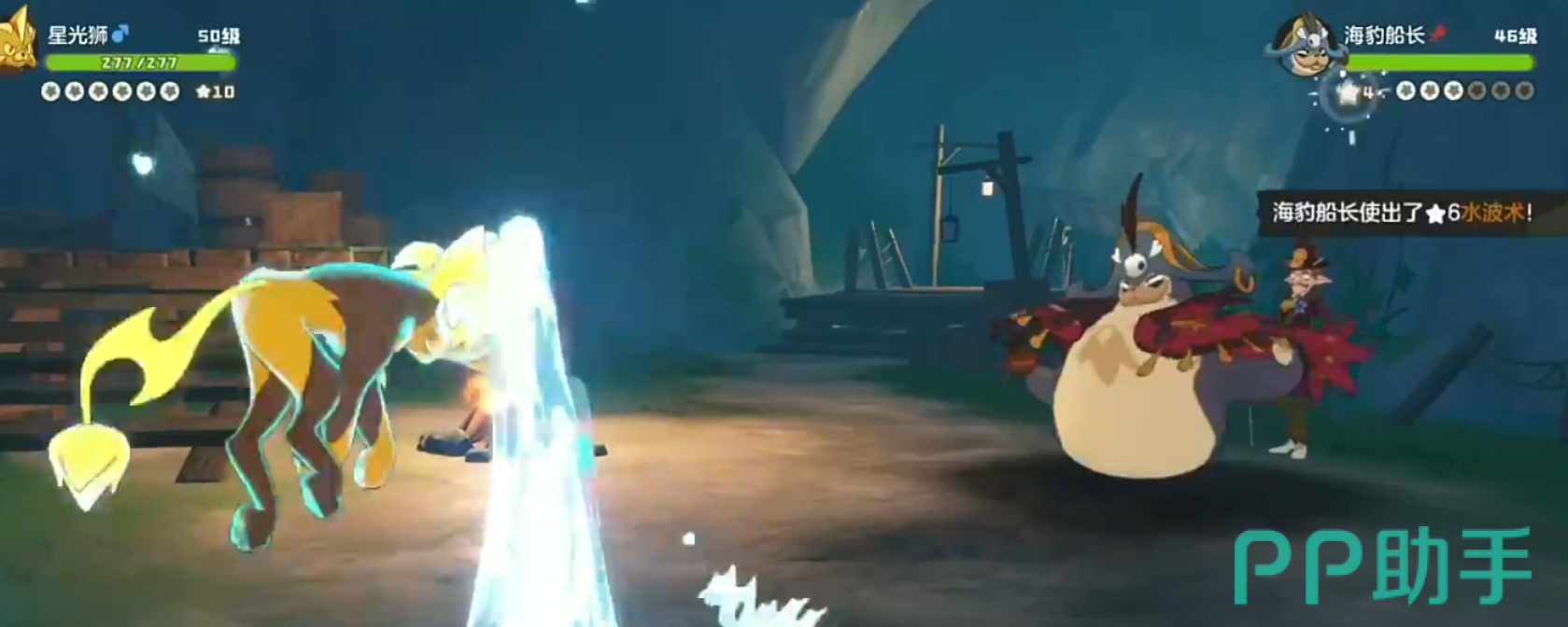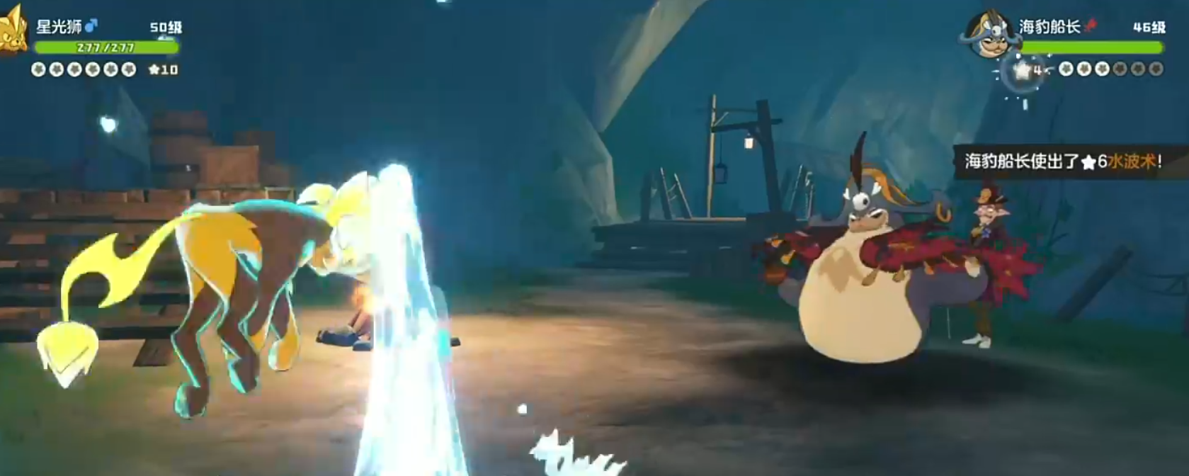 首只上场的是水系精灵海豹船长。鉴于本局存在属性克制伤害翻倍机制,推荐使用电系精灵星光狮进行对抗。让星光狮携带“离子火花”技能出手,凭借电克水的优势可迅速将其击败。第二位登场的是草系与地系双属性的多菇丁。