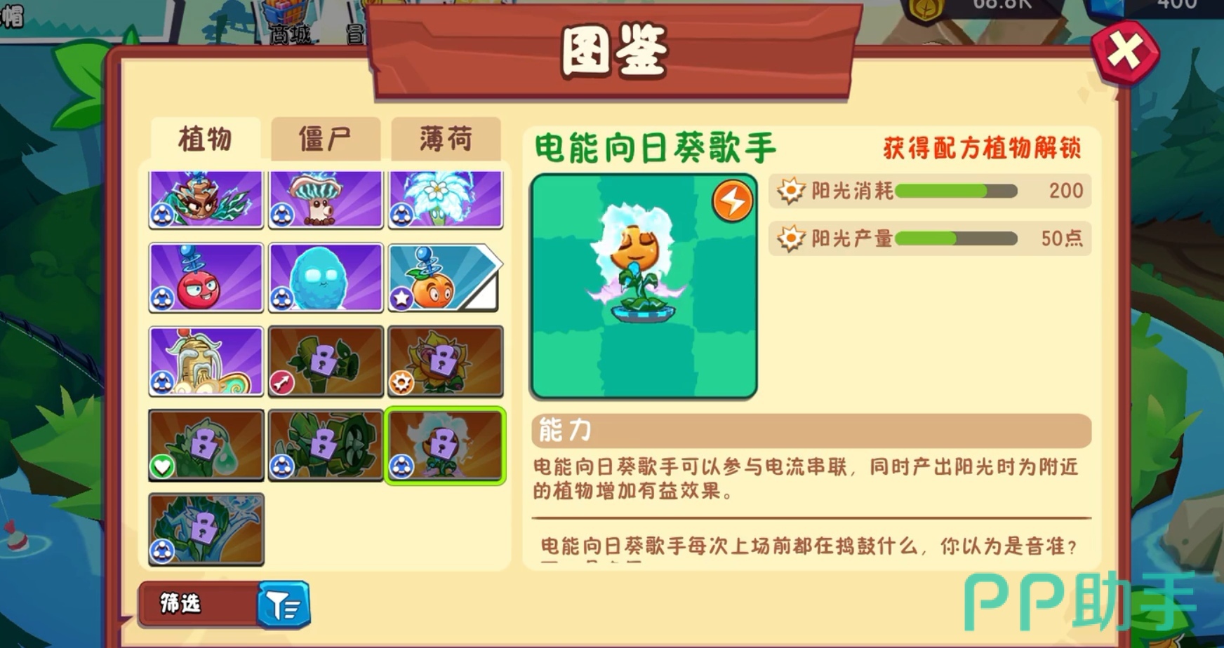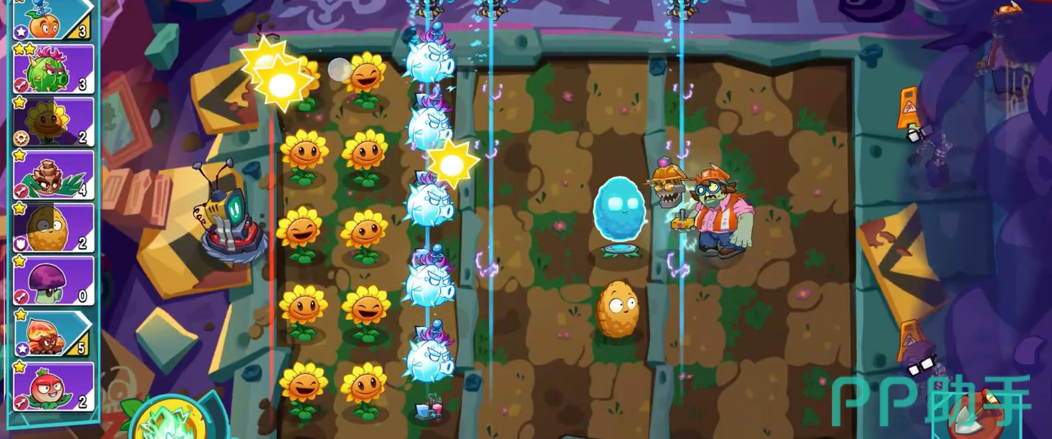 经济型输出植物:电能向日葵。作为兼具资源产出与对空功能的特殊单位,三阶后可释放持续光柱攻击正上方的飞行敌人。尽管伤害偏低,但它占据的是阳光生产位,相当于免费提供额外输出,性价比极高。