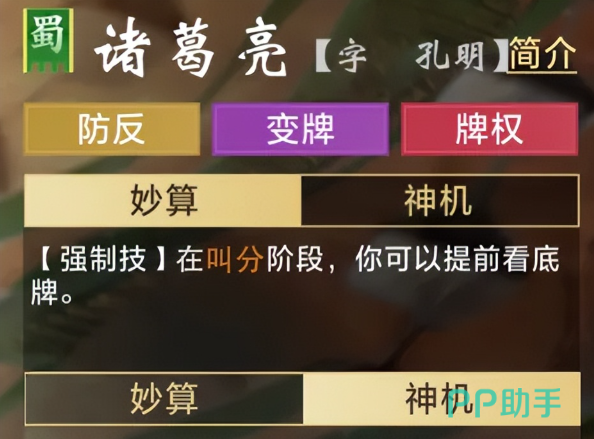 诸葛亮的角色设定完全贴合“神机妙算”的历史形象,其战术定位精准覆盖三大关键词:防反、变牌与妙算。其中妙算能力尤为关键,玩家可在开局前预览底牌,掌握信息优势,从而制定更合理的出牌节奏。而“神机”技能则具备极强的应变能力——当无法压牌时,使用K及以上点数的牌可将其转化为手中数量最多的牌型,转化后还能跳过当前轮次的压制流程,每局最多可触发三次。这一机制如同战场上的锦囊妙计,有效破解对手的见招拆招策略,极大增强了操作代入感。