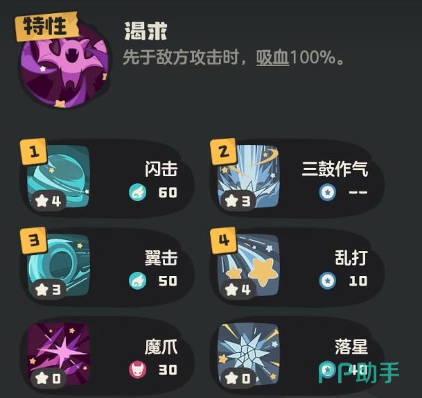它的核心特性为“渴求”,当叮叮恶魔在回合中先手发动攻击时,可额外获得100%的吸血效果。结合其高物攻基础,这一机制能够在输出的同时实现大量生命回复,具备极强的续航能力,甚至在劣势局面下完成反杀。