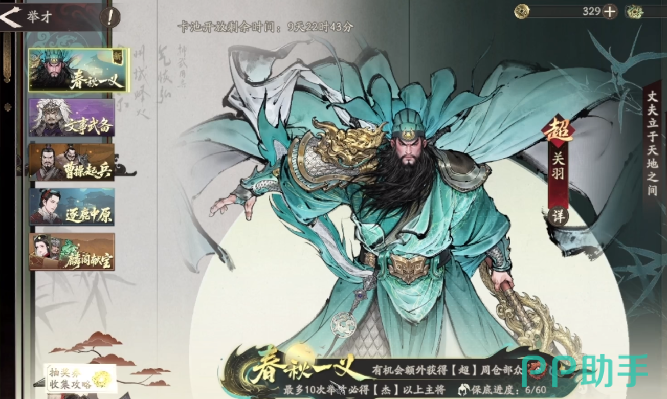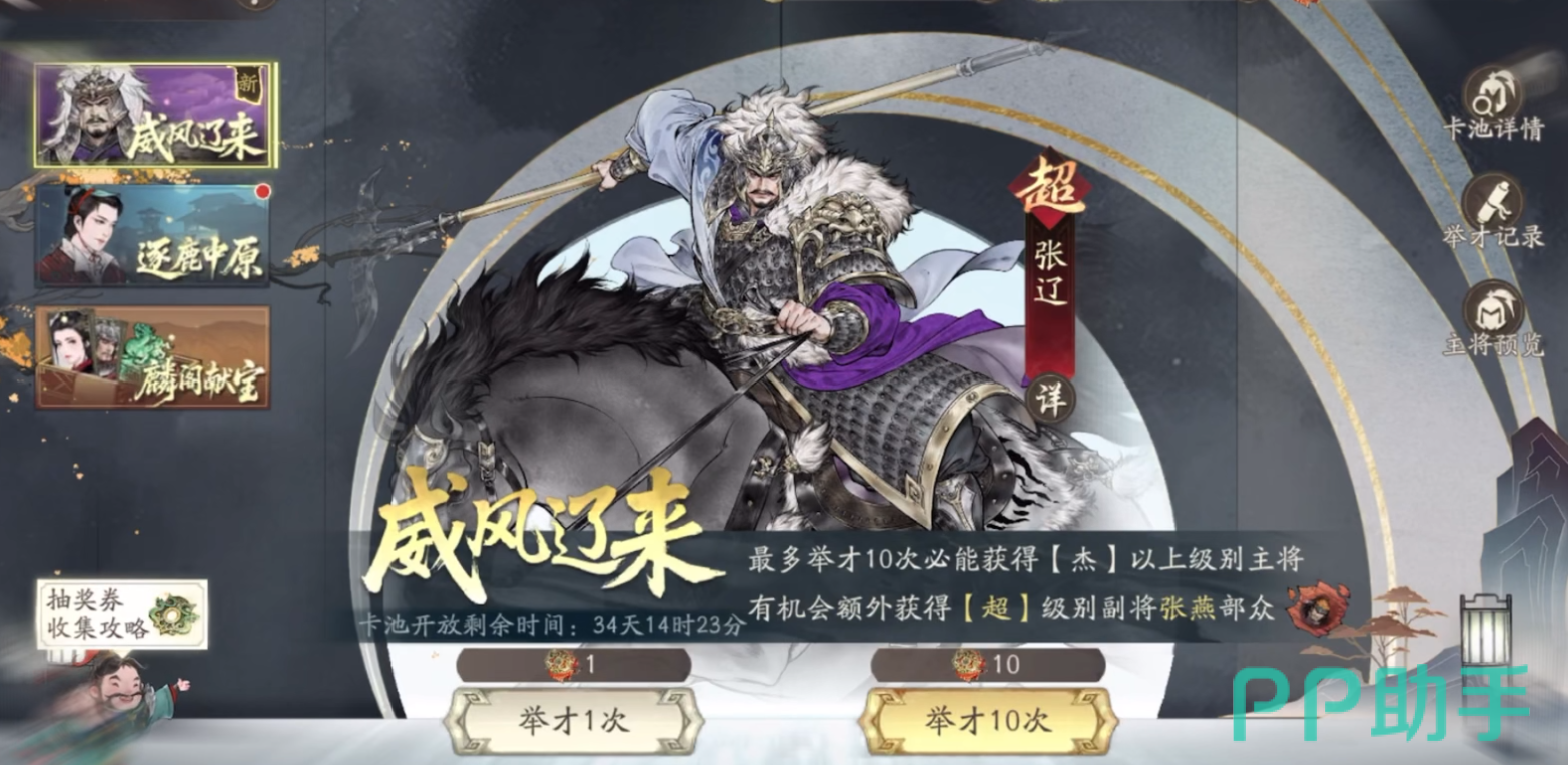 游戏内设有多个并行开放的限定UP卡池,例如开服初期推出的“春秋一义”主题关羽专属卡池。这些卡池可在“举才”界面进行切换查看,需密切关注顶部显示的卡池持续时间。不同卡池之间的保底次数独立计算,且不继承至下一卡池,若错过期限则无法获得当期保底奖励。当前抽卡机制设定为每60次必出本期UP的高稀有度武将,且每10连抽 guaranteed 获得至少一名杰稀有度及以上角色,每次单抽也有概率额外获得同稀有度副将。