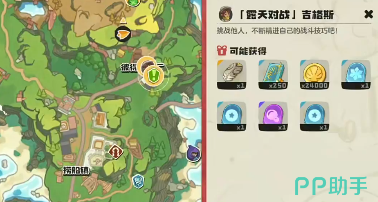 前往吉格斯所在地点时,推荐先传送到捞船镇拾光港口的魔力源位置,随后依据地图指引前进即可。需要注意的是,使用飞行类宠物移动速度较慢,建议切换为陆行类精灵快速奔跑抵达目的地。吉格斯形象为身穿工装的NPC,外观特征明显,找到后与其对话便可开启对战流程。