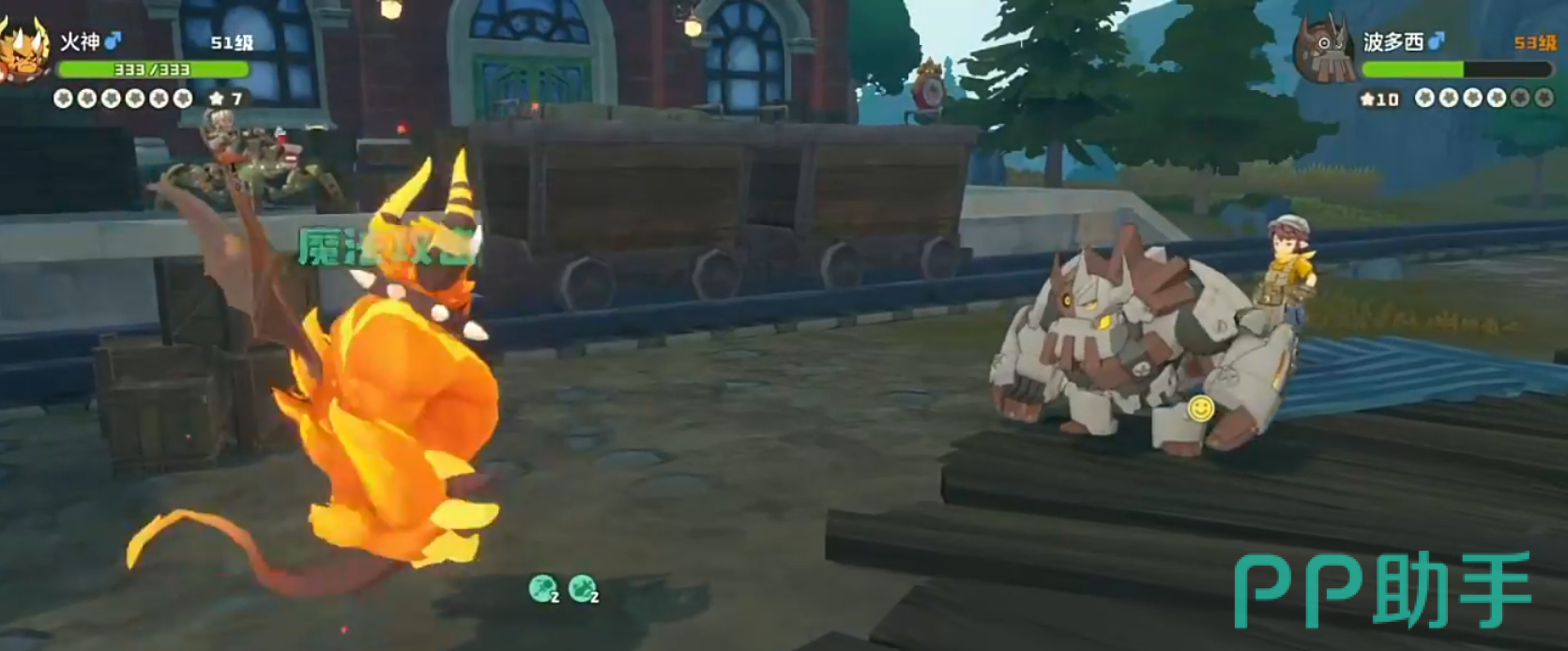 进入第二轮战斗后,敌方将派出四只精灵。首位登场的是地加机械双属性的波多西,因其防御较高,可能需要两次“火焰切割”才能击败。后续依次出场的仍是机甲小子、立方人和权杖5,均为机械系单位,继续使用火系技能可保持压制优势。