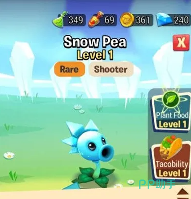 寒冰射手的核心功能依旧围绕着“减速”展开。它通过发射带有冰冻效果的豌豆攻击前方直线路径上的僵尸,并对目标施加持续5秒、降低50%移动速度的减益状态。这一特性使其成为拖延敌方推进节奏的关键单位。相较于前作,本作中其基础设定更加清晰直观:种植所需阳光仅为5点,成本极低,适合开局阶段频繁部署,无需担忧资源压力。生命值为300点,属于标准水平,虽不具备抗打击能力,但在游戏前期足以应对常规威胁。