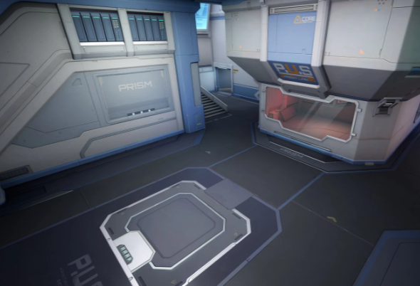 从防守方出生点出发,左侧设有两条并行走廊,沿路推进即可抵达B包点所在的供能室;而右侧仅有一条主通道直通A包点——控制室。因此,防守时应合理分配人员站位,优先控制这两个入口要道,防止对手快速突入下包。