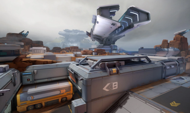 对于进攻方而言,出生后首先进入前哨站区域,在此拥有三条主要进攻路径可供选择。第一条路线向上延伸,通往武器试验室,该区域处于AB包点之间的交汇地带,适合根据战场形势灵活切换攻击方向。