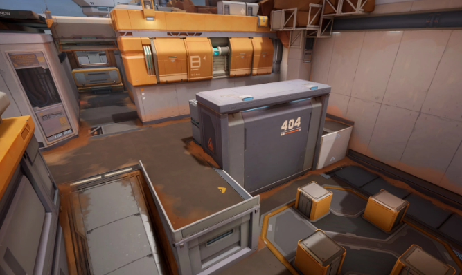 404基地采用经典的攻守对抗设计,防守方从地图上方出生,进攻方则从下方出发。整张图的核心目标围绕两个包点展开——A点位于右侧控制室,B点设在左侧供能室,靠近警务室一侧。防守方的任务明确:守住AB两处关键区域,阻止敌人完成爆破装置的安置。