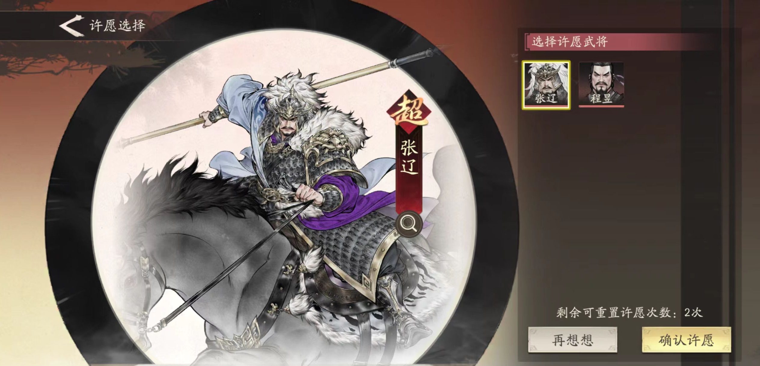 完成新手池抽取后,推荐转向自选武将概率提升池。此卡池允许玩家根据当前阵容需求,自主选择希望提升出率的目标武将,实现更有针对性的抽取。并非所有武将都支持加入自选范围,具体开放名单会依据版本节奏调整。例如测试期间曾开放程昱与张辽作为可选对象。从实战表现来看,张辽作为一名高泛用性的骑兵主将,具备较强的输出与生存能力,优先抽取价值较高;而程昱则定位为谋略型前排,拥有不俗的承伤与控制能力,适合偏好稳扎稳打打法的玩家。