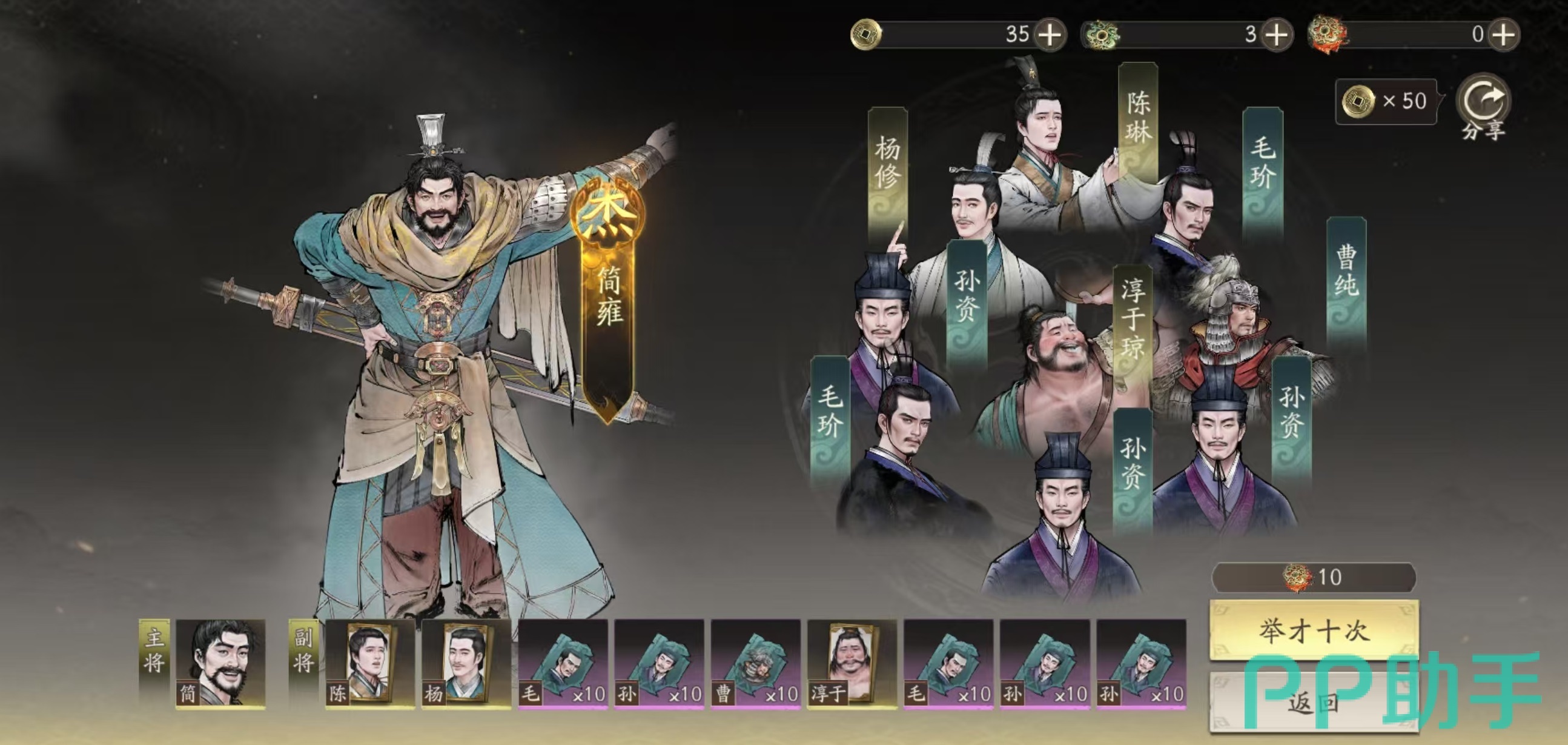 在新区开启初期,玩家主要可参与的是新手池与自选武将概率提升池。其中,新手池提供专属折扣福利——原本需要50个道具的50连抽,现仅需40个即可完成,相当于享受八折优惠。更重要的是,在该卡池中进行50次抽取内必定获得一名超品质武将,属于零风险高回报的必抽项目。建议新人玩家务必把新手池抽满后再考虑其他卡池,最大化利用初始资源。