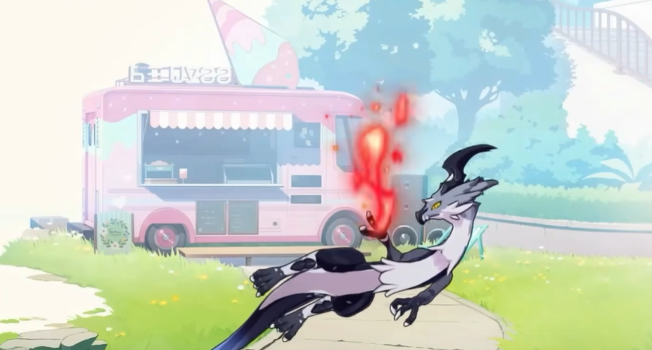 焰刃龙最显著的特征在于其尾部演化而成的镰状利刃,随着力量觉醒,颜色会从冷静的深蓝逐步转变为炽烈的赤红,展现出由内而外燃烧的压迫感。它天生具备强烈的战斗本能,渴望征服一切对手。作为刃的专属契约精灵,焰刃龙所掌握的刀锋之力极为锐利,配合高温火焰形成双重打击,在作战中可对敌方造成穿透性伤害与持续灼烧效果,综合输出非常可观。
