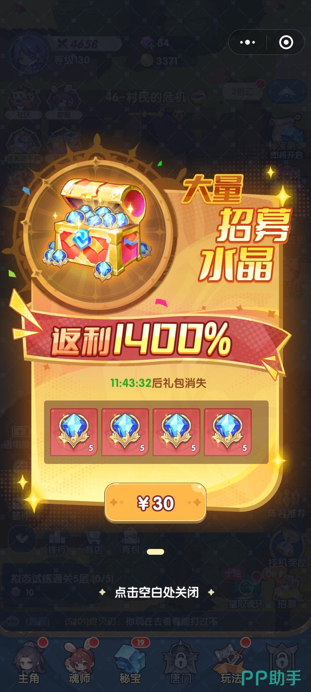 若希望进一步缩短培养周期,还可选择30元限时超值礼包,额外获取大量招募资源,用于补齐戴沐白、朱竹清和宁荣荣三位成员。总体花费控制在百元左右,即可完成整套阵容搭建。这样的投入产出比,在同类阵容中极为突出,特别适合追求效率与性价比的微氪用户。