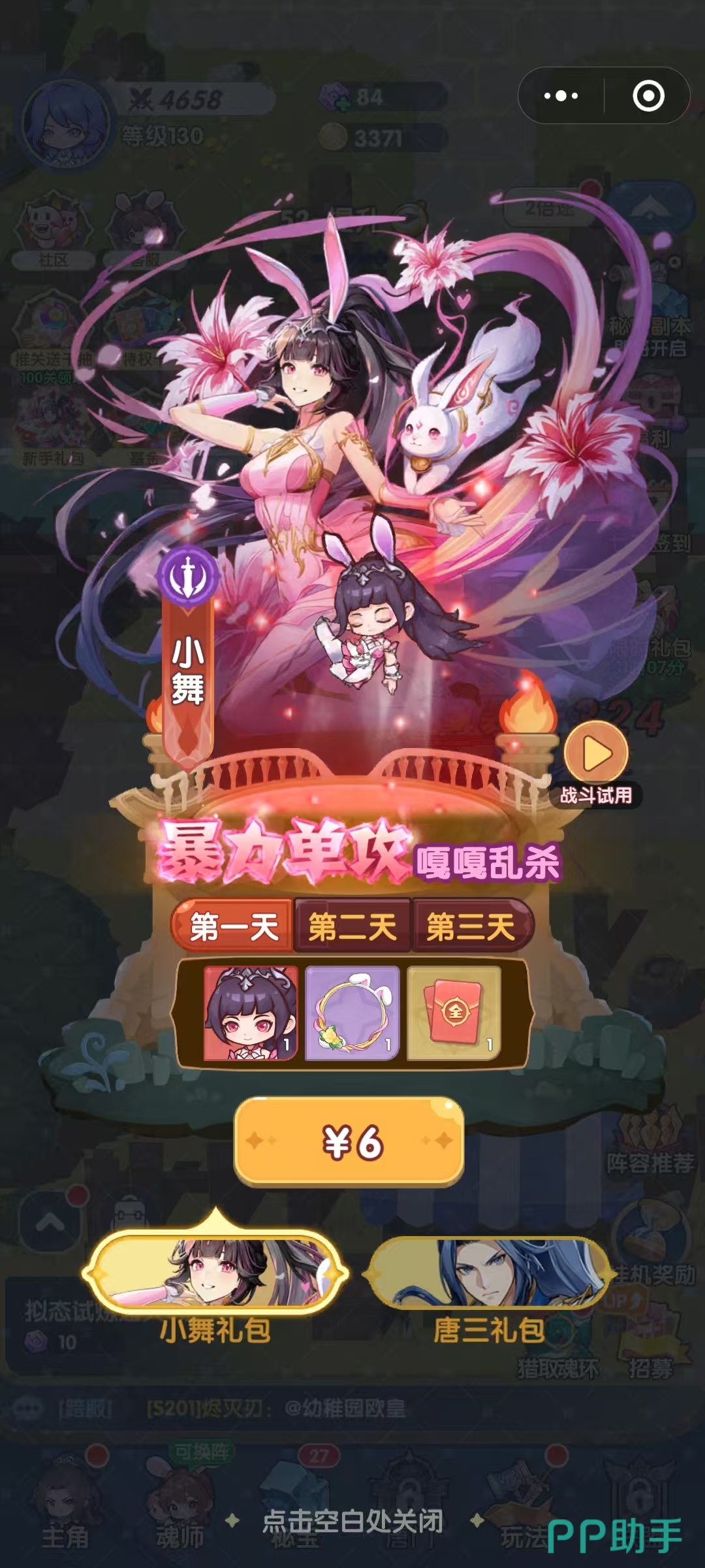 对于投入预算较低的玩家来说,这套阵容的优势在于获取路径清晰且成本可控。相较于依赖稀有抽卡的角色组合,唐三、小舞等人可通过首周目活动及小额充值稳定获得。建议开局阶段优先入手6元的小舞特惠包和30元的唐三专属礼包,仅需36元即可锁定两大核心输出。随后可考虑购买68元的魂师成长基金,累计返还高达180个招募水晶,大幅提升后续抽取概率。