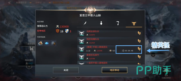 若想专门查找精英级敌人,只需切换至右侧的怪物标识选项卡,在弹出的列表中即可浏览包括野怪首领、精英怪和普通野怪在内的所有敌对单位。同时,系统会显示每个精英怪与你的实时距离及其战斗力数值,便于提前评估是否具备挑战条件。