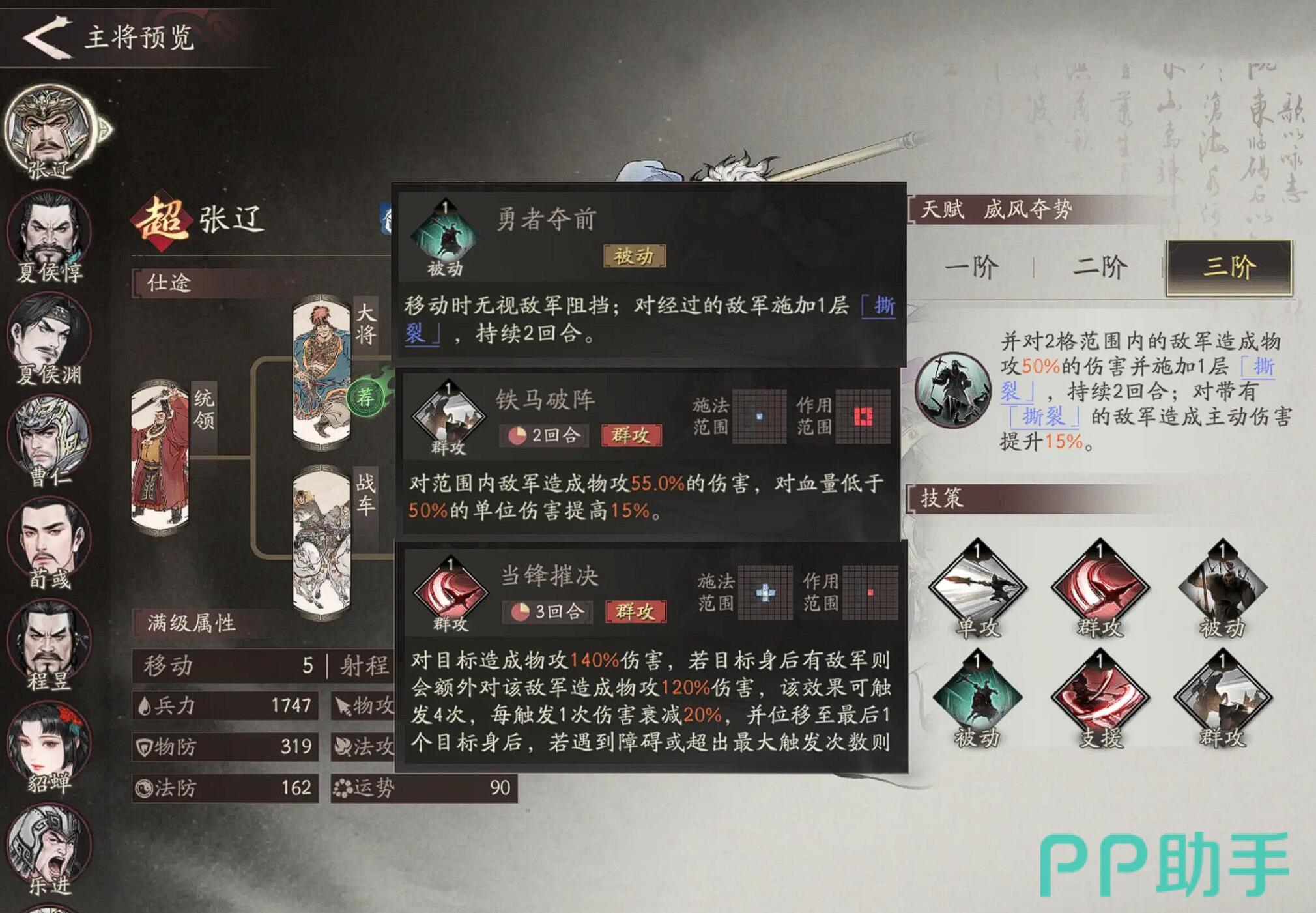 关于张辽的技能升级顺序,推荐优先级为:当锋摧决>铁马破阵>勇者夺前。其中当锋摧决必须优先点满,该技能具备对后排单位的穿透伤害,满级后提升15%基础伤害,且攻击两个及以上目标时可触发“无法选中”状态,极大增强生存与输出环境。勇者夺前拥有无视地形移动的能力,并附加撕裂效果,配合天赋可实现15%增伤,在PVE场景中清怪效率极高,在PVP中也能有效限制敌方走位。尽管强度不俗,但其等级提升带来的收益相对平缓,因此排在最后升级。而铁马破阵可在范围内造成武力值55%的物理伤害,附带斩杀机制,适合残局收割,但需确保张辽能存活至敌方血量较低阶段才能发挥最大作用。