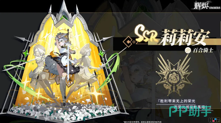在《辉烬》这款动作角色扮演游戏中,莉莉安作为核心SSR级别角色之一,受到了众多玩家的关注。她正是玩家们口中所称的“百合骑士”,隶属于青叶骑士团,并担任副团长一职,因此在主线剧情中拥有较高的出场频率和重要地位。