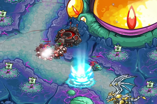 第四座为三管加农炮,拥有发射三枚炮弹的能力,炮弹落地后产生爆炸伤害,无视敌方护甲,并具备溅射效果,适合清理成群单位,群体输出能力极为出色。