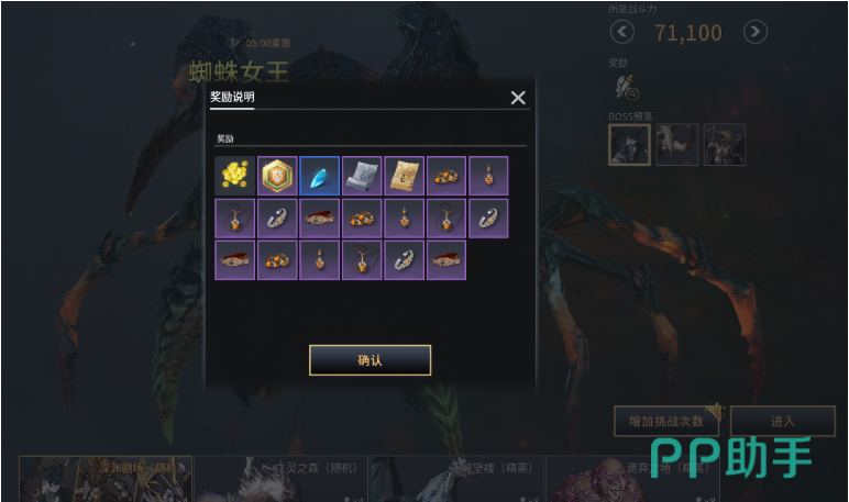 第二种为随机组队副本,通常由4名玩家共同完成,支持通过佣兵系统进行自动匹配队友。每日拥有2次基础奖励次数,消耗指定道具后还能追加3次挑战权限。此副本产出包括首饰、武器装备、强化用的宝石、金币、设计图、精英副本入场券以及坐骑相关物品,是提升角色战力的关键来源之一。