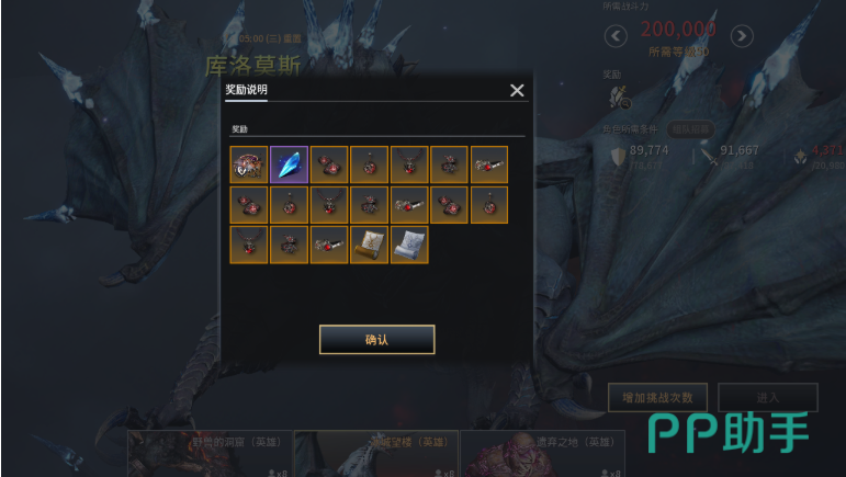 第三种是精英副本,每周二和周四定时重置,主要提供高阶装备与饰品、强化石及设计图纸等稀有资源。第四类则是英雄专属副本,具备特殊准入规则——所有队员必须确认后方可进入。其奖励在每周一、三、五刷新,内容涵盖高级武器首饰、强化材料、古代币、设计图以及神话级精灵卡牌。