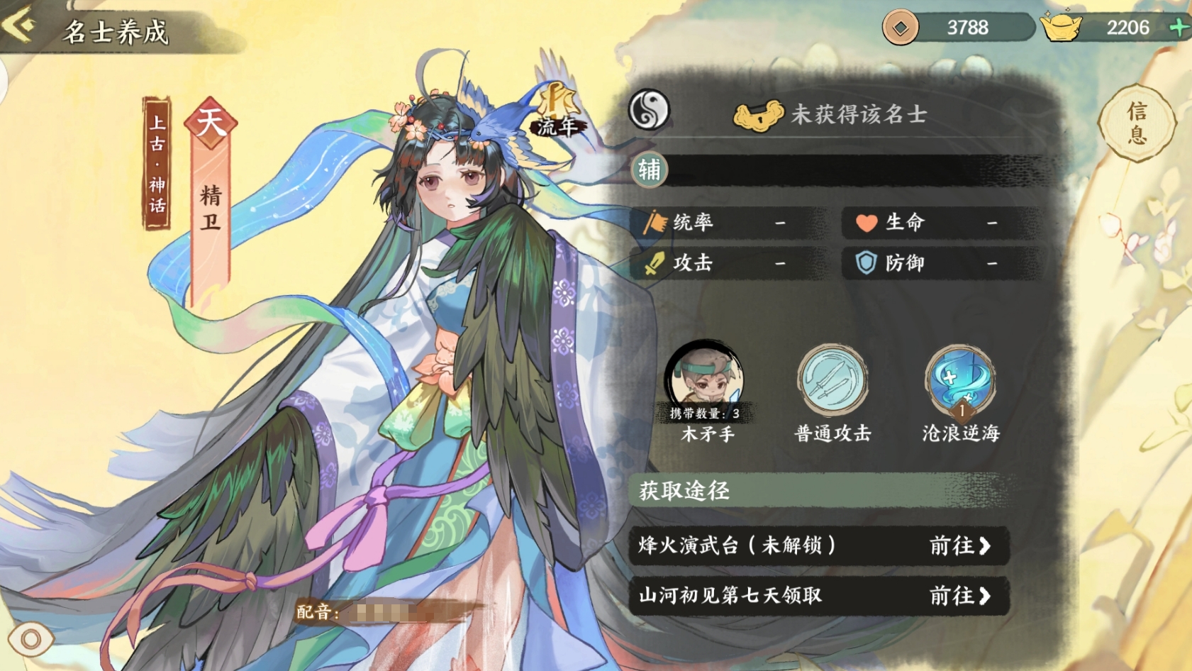完成开服后的七天任何就能直接拿到的天级名士,自身为两仪属性,所以可进任何队伍充当治疗辅助。并且她在释放技能时,可为队友提供持续6秒的恢复效果,能有效地保证队伍的血线健康。