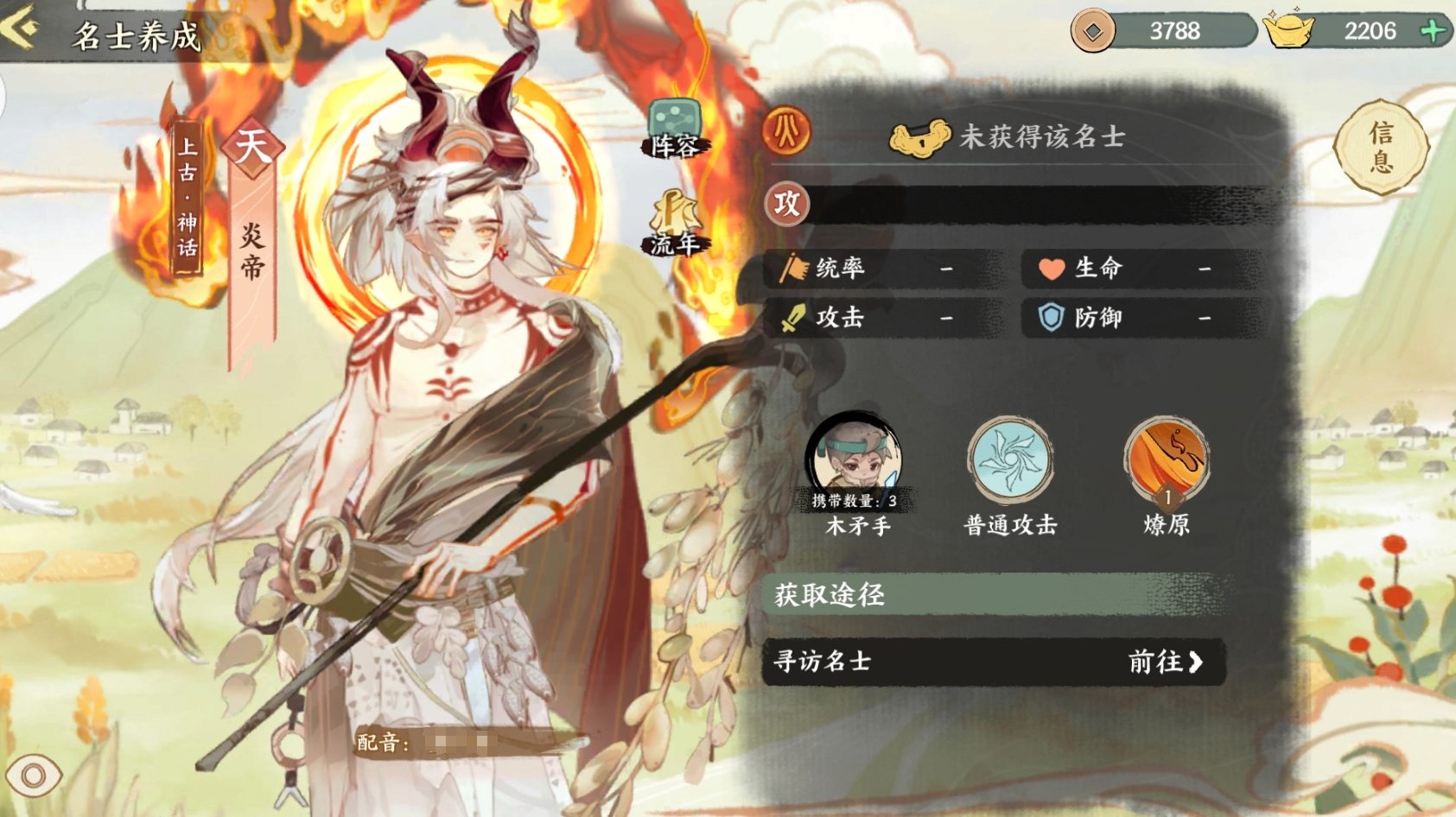 炎帝为火属性天级,是名主攻的名士,养好后即可成为火属性阵容里的基石。他的技能不仅能作用敌方全体,还能在技能升到3后,在攻击敌方的同时,对它们施加负面,降低他们的伤害和暴击率。