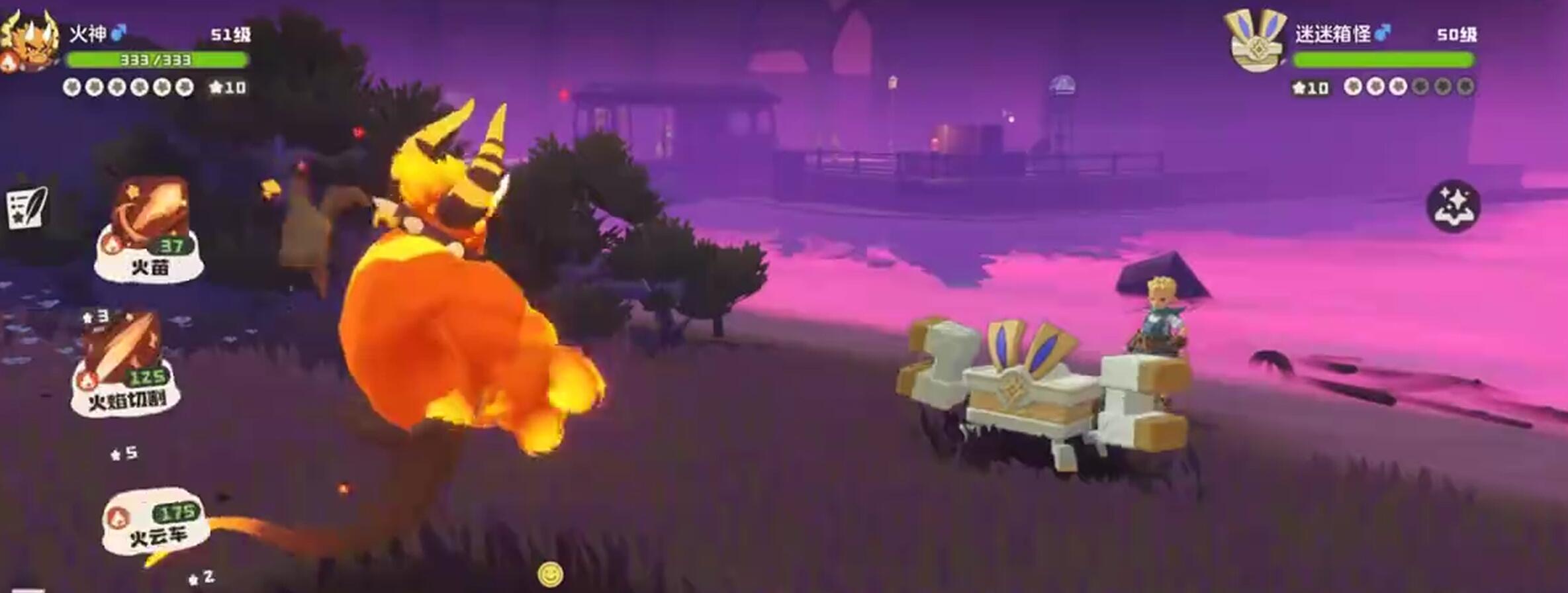 与葛文对话后,战斗随即开始。他的首只出战宠物为机械属性的迷迷箱怪,等级为50级,拥有3点魔力值。建议使用火神应战,因其火属性可有效克制机械系,配合技能“火焰切割”能快速取胜。第二只宠物是同样50级的声波提塔,也属机械属性,仍可被火系技能高效压制。第三只精灵名为帕帕斯卡,同样是机械属性,依旧受制于火神。此阶段葛文仅使用三只宠物,胜利后将立即进入第二轮对战。