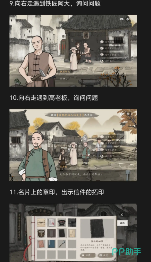 上面这些内容,把山河旅探第二章攻略周老先生任务的流程都捋清楚了,按这个思路玩基本不会漏关键信息,也不用卡壳在某个环节,等做完这个任务,周老先生给的线索还能帮玩家后面反驳其他嫌疑人。