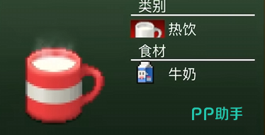 游戏中的热饮种类丰富,每一种都有独特的原料组合。首先介绍的是美式浓缩咖啡,这款饮品需要使用两份咖啡豆进行冲泡;紧接着是牛奶咖啡,它的基础构成是牛奶与咖啡的结合,简单却经典。