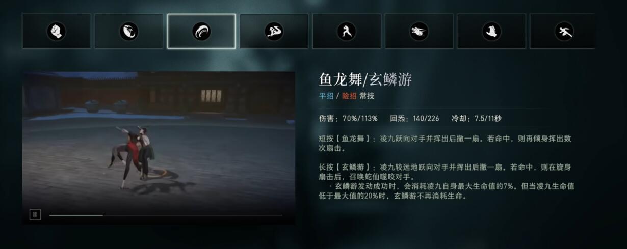 连招流程得结合血线和回炁来打。基础的连招可以从玉环钩短按起手,拉人过来马上接普攻四段,第三段打完取消后摇非常灵活,接着用鱼龙舞短按跃击,把敌人打浮空,这时候接玄鳞游长按,旋身扇击+蛇咬能在空中持续命中,回炁也多。如果血线高于20%,这时候可以用探珠囊长按,召唤蛇仙噬咬,虽然耗血但伤害高,还能破防。最后看炁量,够的话接罪龙却鳞,扔扇召唤蛇仙收尾,一套下来回炁基本满了。连招里长按技能别按太早,等前一个技能命中再放,不然容易断连。