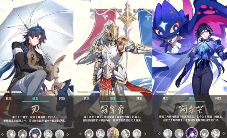 崩坏:因缘精灵的角色体系挺有意思的,每个阵营的角色都有自己的定位和故事线,崩坏因缘精灵人物大全就帮大家介绍一下,真王们以前都是旧世界的大人物,手里握着成对的元理,他们的经历基本就是旧世界崩坏的缩影,僭主们守着新世界的位面,各自管着一种独立元理。