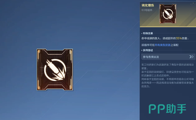 当然玩家也可以选择钝化增伤,这也是一个支持在所有武器上装配的配件,使用之后,可以让已经受到减速的角色,额获得35%的伤害,如果想要利用这一个插件攻击的话,最好是选择一个能带有减速伤害的成员,这样才能在对战的时候,给对手带来更大的伤害,假如没有其他减速作用的队友,那就需要去更换其他的插件,比如选择烈焰冲击增加火环,不但能受到基础的枪械伤害,可以利用火环带来群体伤害能力。