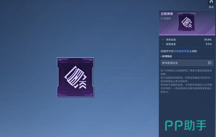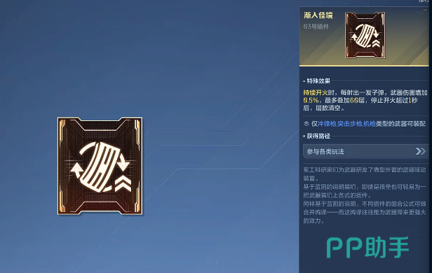单纯依靠角色最基础的性能远远不够,还需要借助一些特殊的插件提升能力,如果想继续扩充弹夹容量的话,玩家就可以选择添加过载弹夹,利用这个插件可以去提升弹夹的容,虽然整体的换弹速度会变慢,但枪械的续航能力补充了这项劣势,插件可以装配到任意的枪械上,有需要的玩家可以自由搭配,除了增加弹夹容量之外,还可以选择渐入佳境,这是一个能加到冲锋枪,突击步枪和机枪上的插件,使用这个插件之后,能在每一次开火的时候,增加额外的伤害能力,伤害最多可以叠加60层。