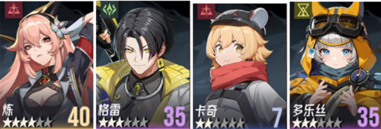 炼和格雷两个角色都有很不错的输出能力,能够担任队伍的输出位置,而卡奇可以为队伍中的队友进行辅助,将队伍中的行动条迅速提升,而多乐丝属于奶妈,可以为队伍中带来治疗,也能够增强一定的攻击力,这样整体队伍配置有输出,有辅助治疗,就是一个较为完整的队伍了,除了一些特殊机制的情况下,这样的配备可以说是比较标准的队伍了,在应对大多数敌人时都可以以这一标准去安排。