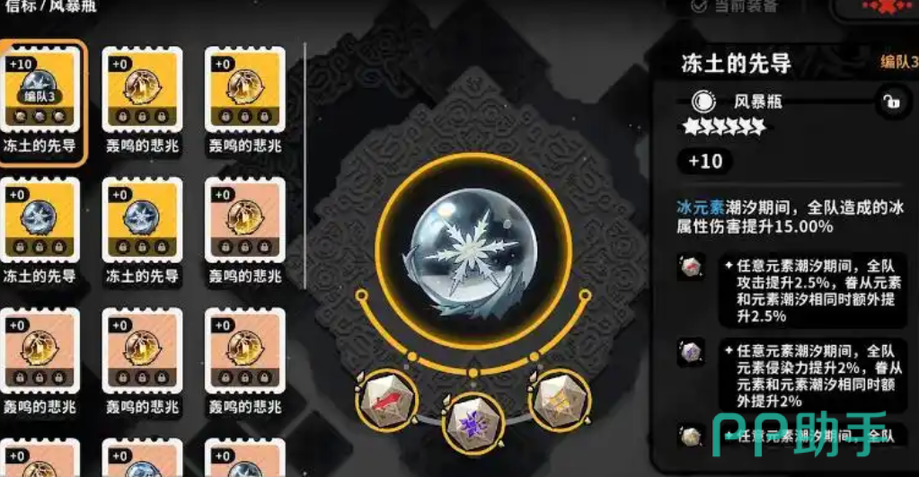 若是不想使用增强暴击和伤害的词条,大家也可以选择带有元素伤害加成的词条,比如说主词条选择的是冻土的先导,那副词条就可以选择能够提高冰元素伤害以及元素侵染的词条,这样子,只要是冰属性的角色在词条的作用下,自身的攻击伤害都能大大的提升,若是辅助类的职业,那在词条选择上就可以优先选择增强自身辅助能力的词条。