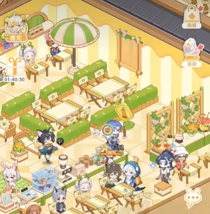 店铺中摆放上一个小鹿家具,还可以增加店铺的幸运值,拦截更多的客流量,小朋友们可以在家人吃饭时和梅花鹿互动,愉快的玩耍。家具的幸运值越高,为小店带来的总体收益和利润就会更加丰富。每天都会迎来新的顾客与他们之间的对话,也会让我们获得更多收获,把握住更多顾客的口味偏好。