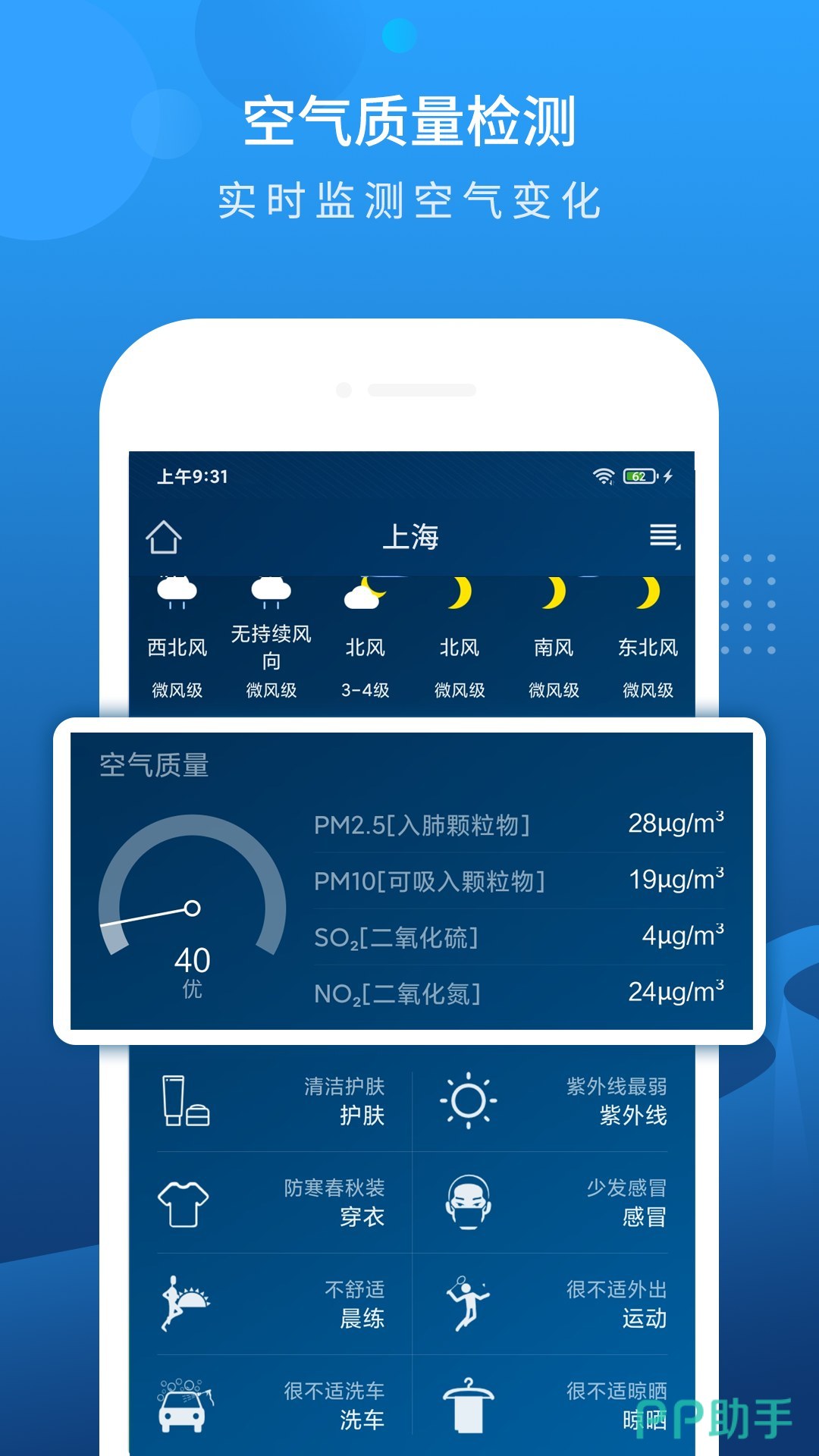 该应用操作简洁流畅,支持字体大小自定义设置,让信息展示更加人性化。除了提供温度、湿度等基础数据外,还实时更新体感温度与空气质量指数,尤其对雾霾状况有详细提示,帮助用户全面了解当前环境状态。