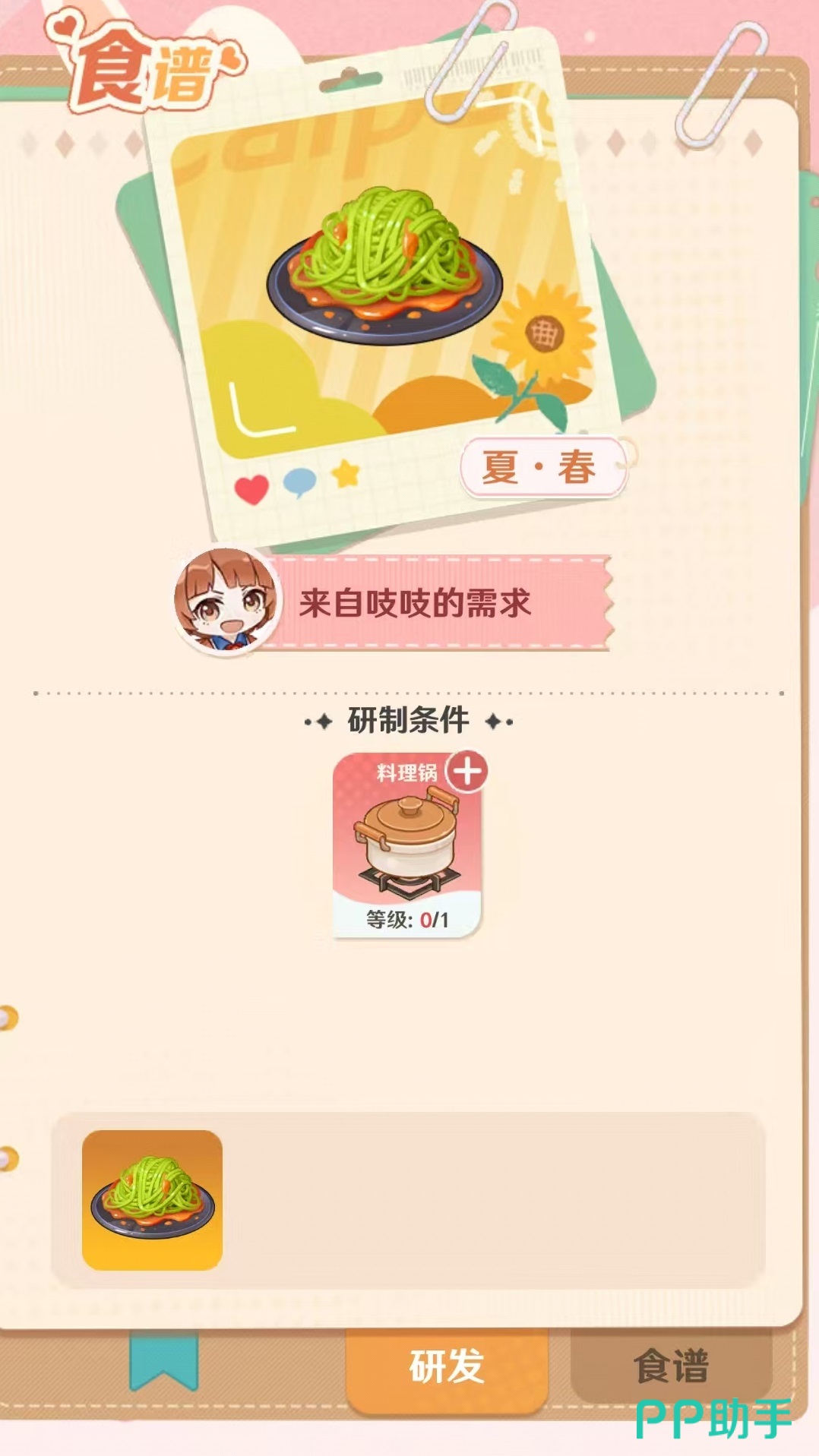 目前获取食谱的主要方式包括研发解锁、任务奖励以及限时事件等,其中最核心的方式是通过菜品研发系统逐步拓展菜单。进入游戏后,点击前台界面即可进入菜谱管理页面,查看已解锁的所有料理信息。每道菜肴都标注了星级要求、所需食材、制作耗时及最终售价,帮助玩家合理规划生产节奏。当满足特定条件时,会有食客主动来电提出定制需求,按照提示准备对应原料并配备必要设备,就能成功研制出新菜品。